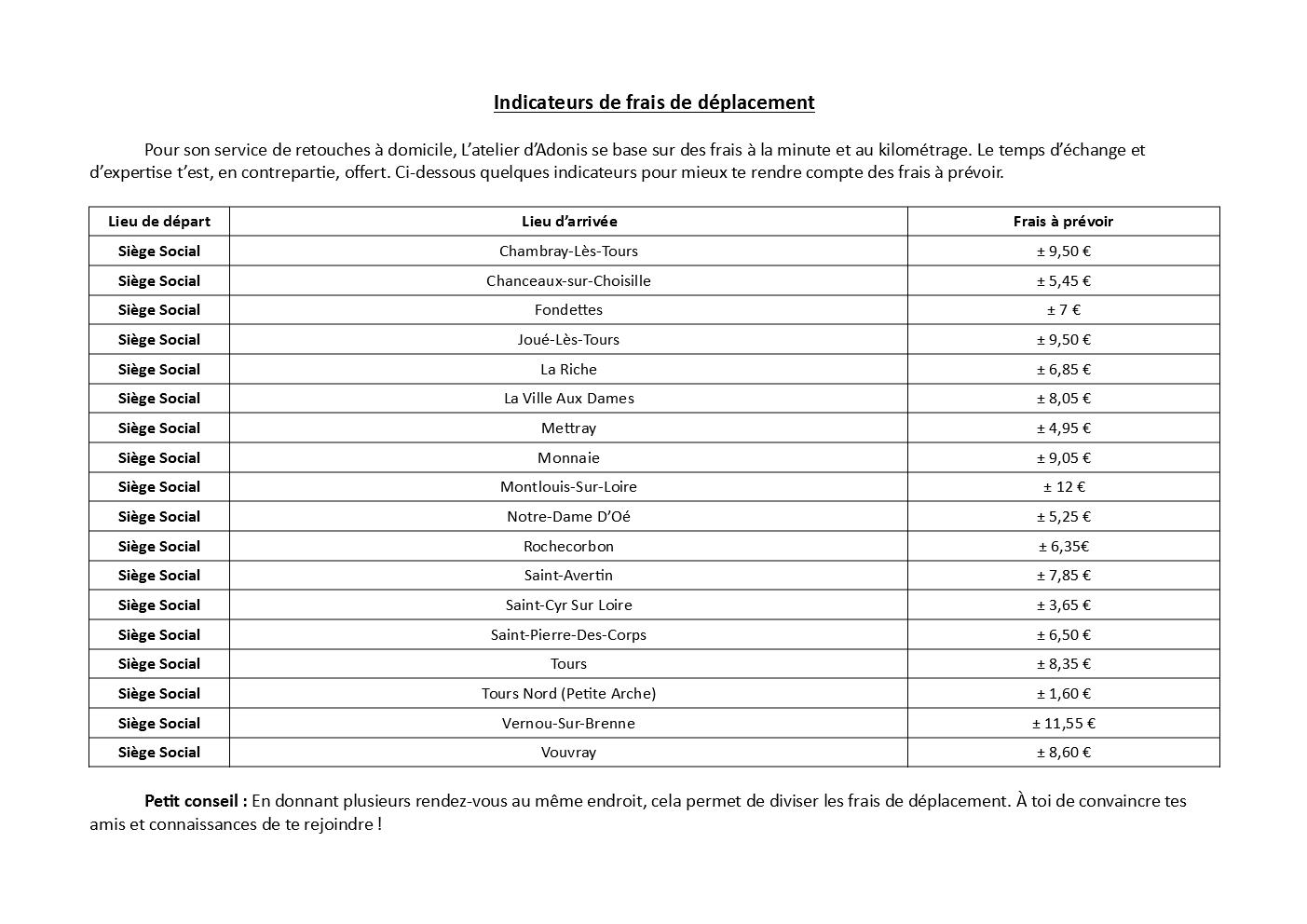 Découvre ci-dessous les tarifs pour tes retouches à domicile. Tu trouveras également des détails sur les frais de déplacement.